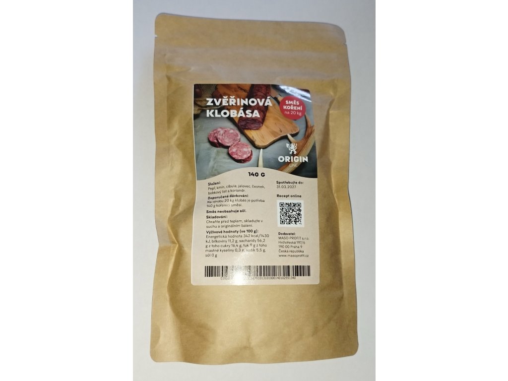 Na výrobu 20 kg klobásy budete potřebovat celý 140 g sáček. Tato přesně odměřená porce zajistí, že vaše klobásy budou mít dokonalou chuť a aroma bez nutnosti dalšího vážení a míchání.